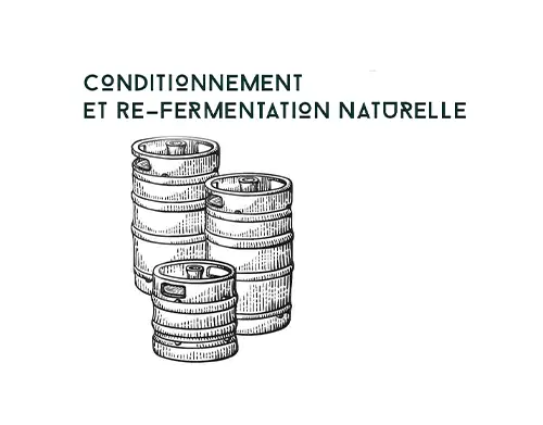 Une fois la fermentation terminée, la bière est transférée dans des fûts ou des bouteilles pour le conditionnement. La carbonatation peut être ajoutée en ajoutant du sucre ou en injectant du CO2.